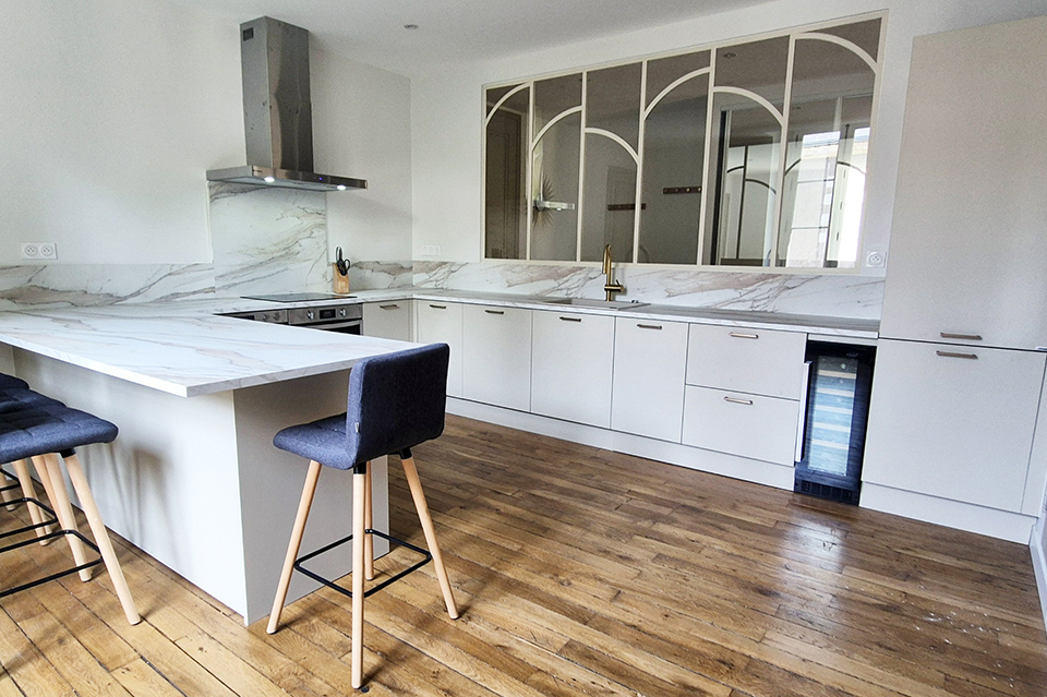 DIVERS : CUISINE EN U AVEC GORGES ALU ET OUVERTE SUR SALON